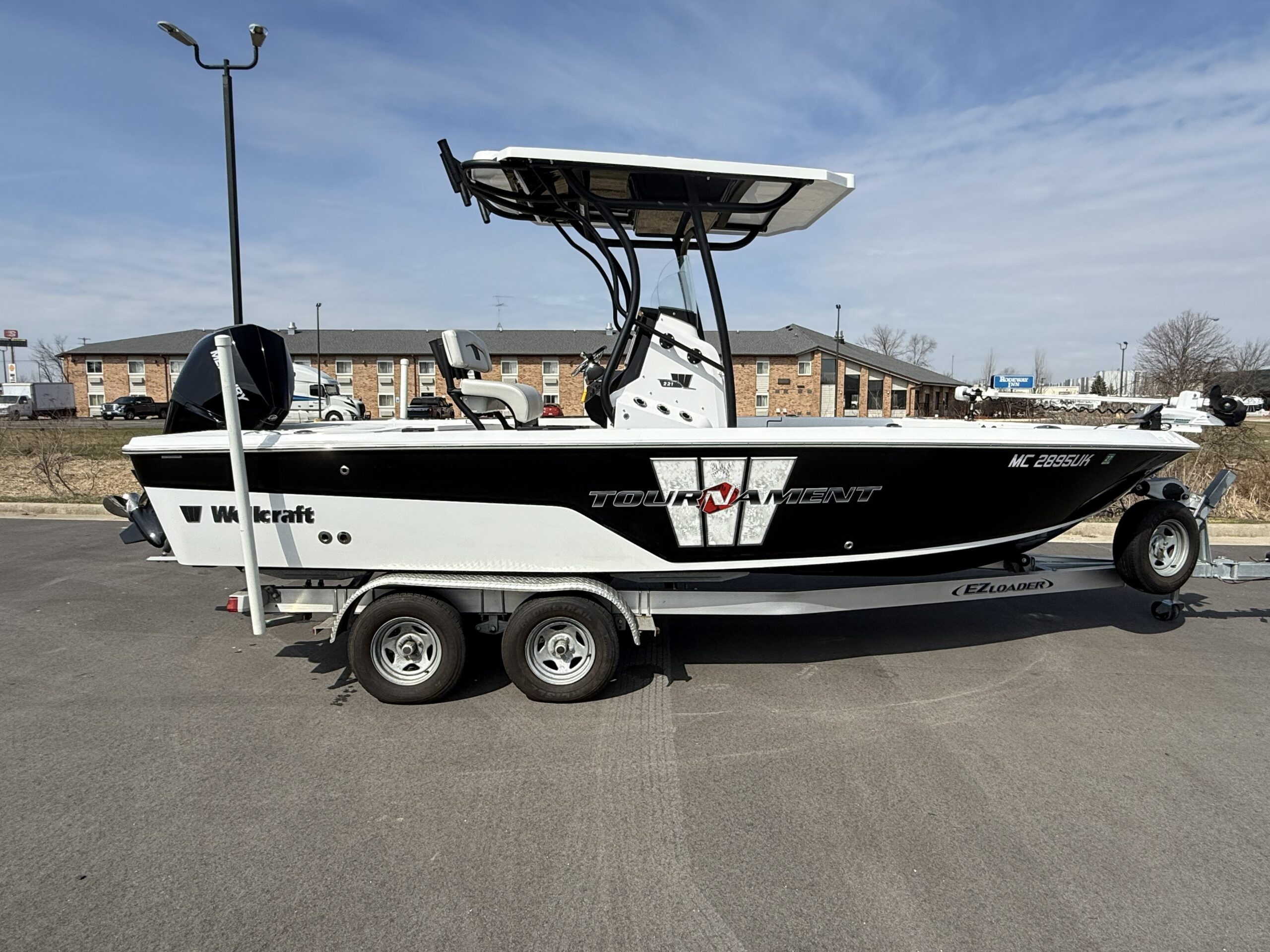 Boat comes equipped with a Mercury 200XL with approximately 300 hours on it and tandem axle EZ Loader trailer.