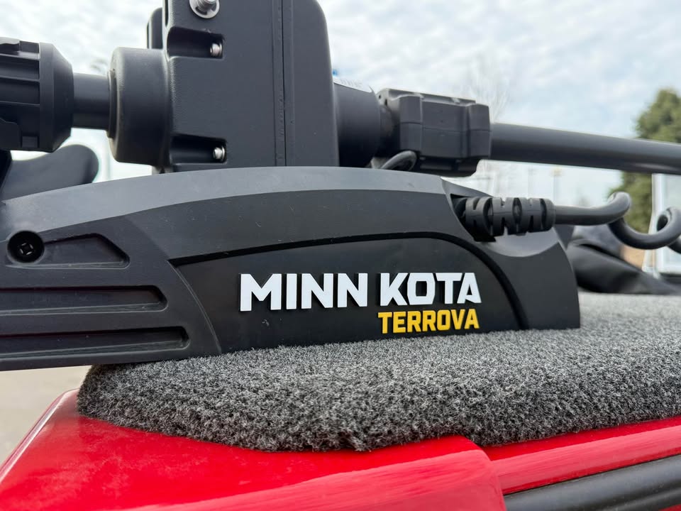 Features include bimini top, cover, MinnKota trolling motor, Helix 7 at dash, Traxstech, swim platform, 2 livewells, jump seats, radio, and rod locker.