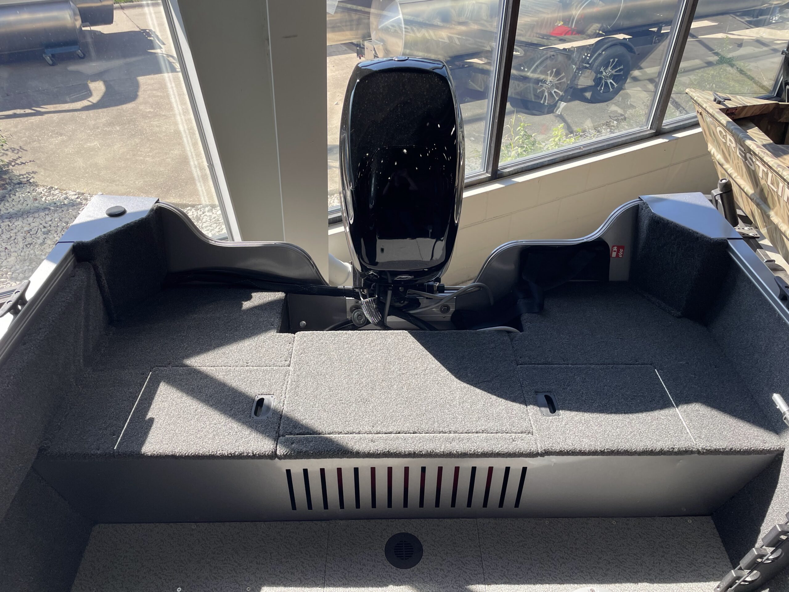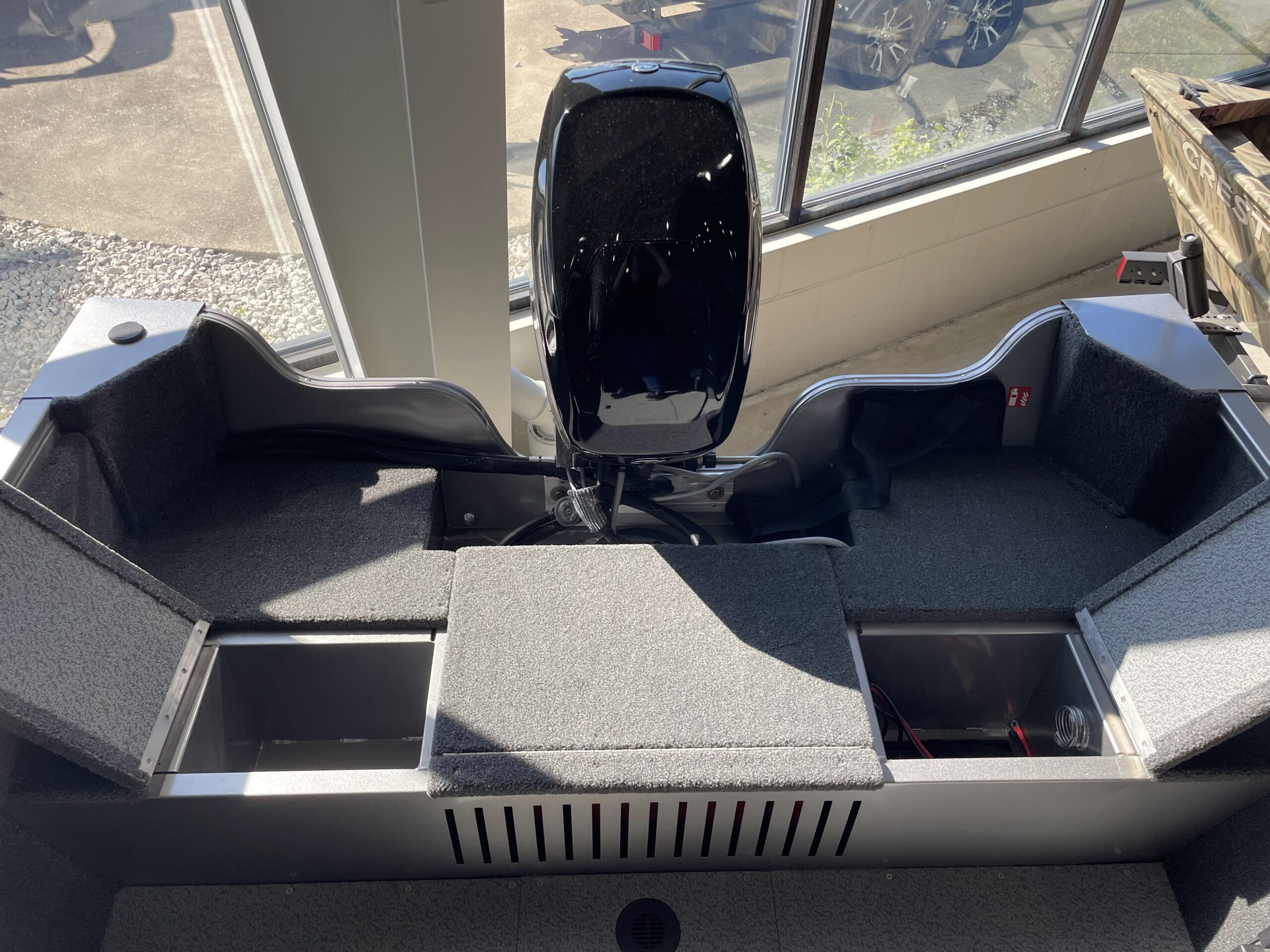 - Trolling motor battery storage compartment (12V system compatible) (bow)