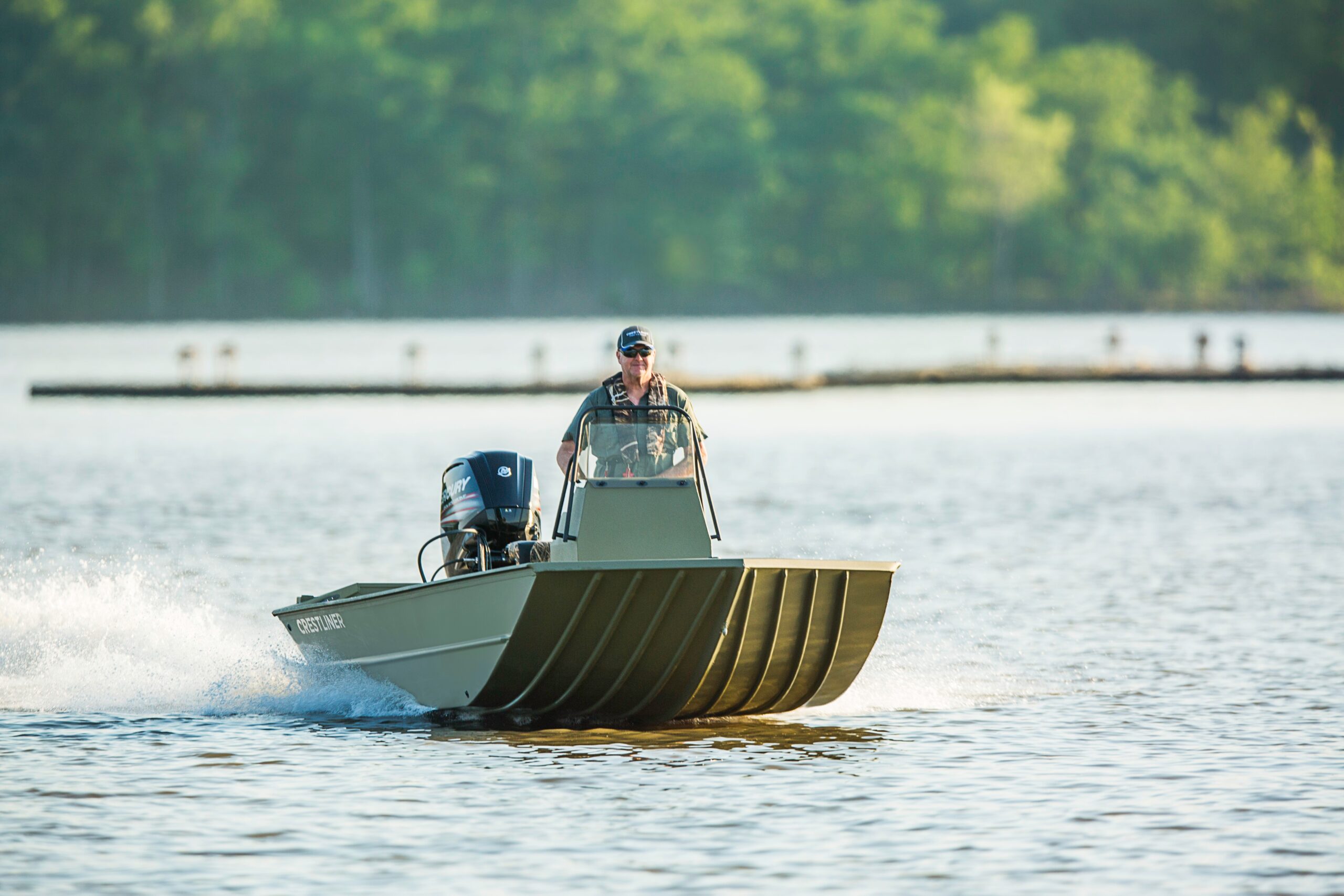 When maneuvering hazard-filled waters, it’s essential to have the best view. That’s why we made the 1660 Retriever FCC. This 16′ forward center console boat gives you a wider view, a smaller draft, and the space to pursue your passion on the water. The ultra-durable, zero-wood construction and all-welded aluminum hull makes this boat one of the best small tunnel hull jet boats to navigate shallow waters.
