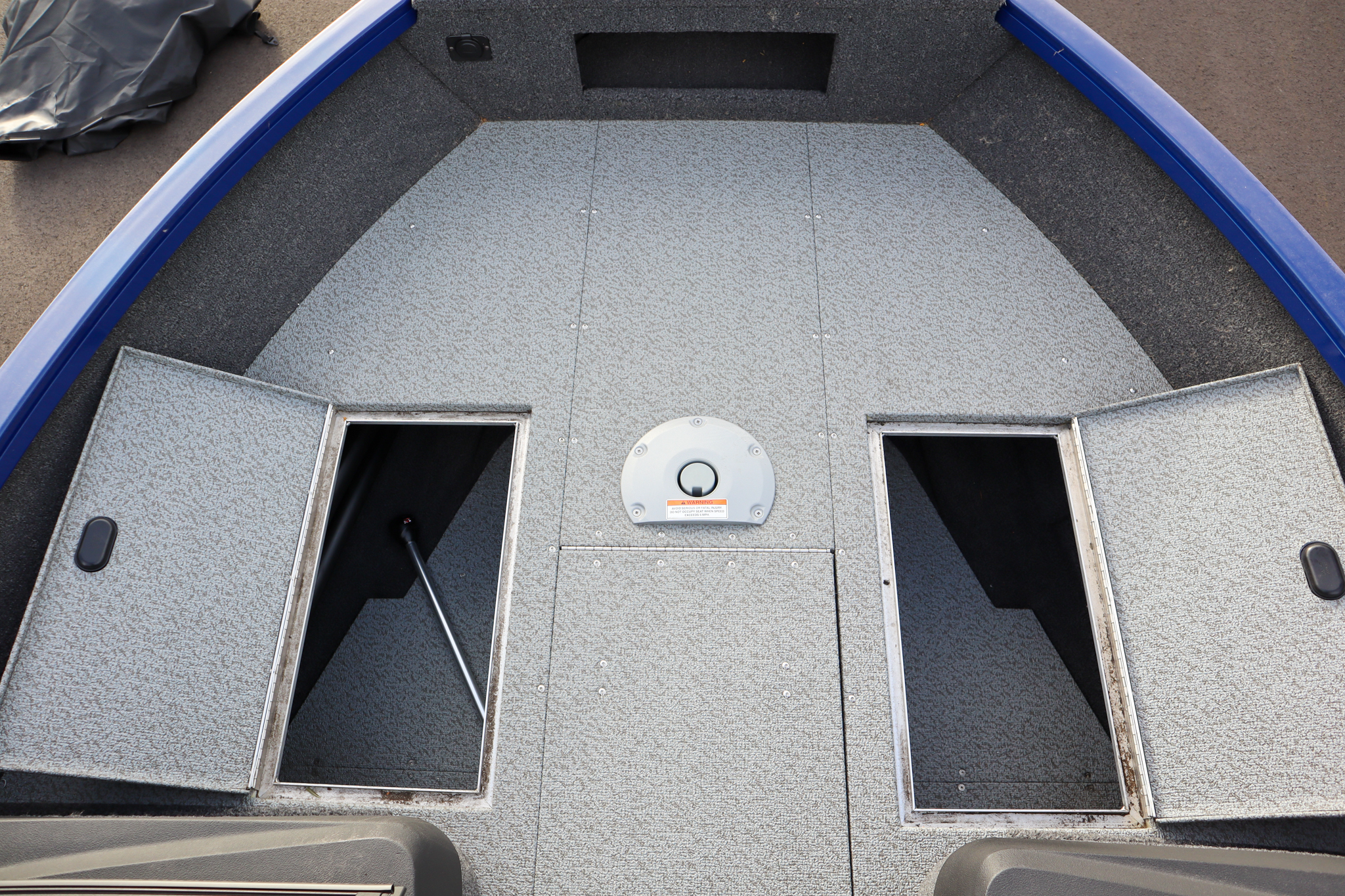 - Trolling motor battery & charger storage compartment (24V system compatible) (under center rod locker)