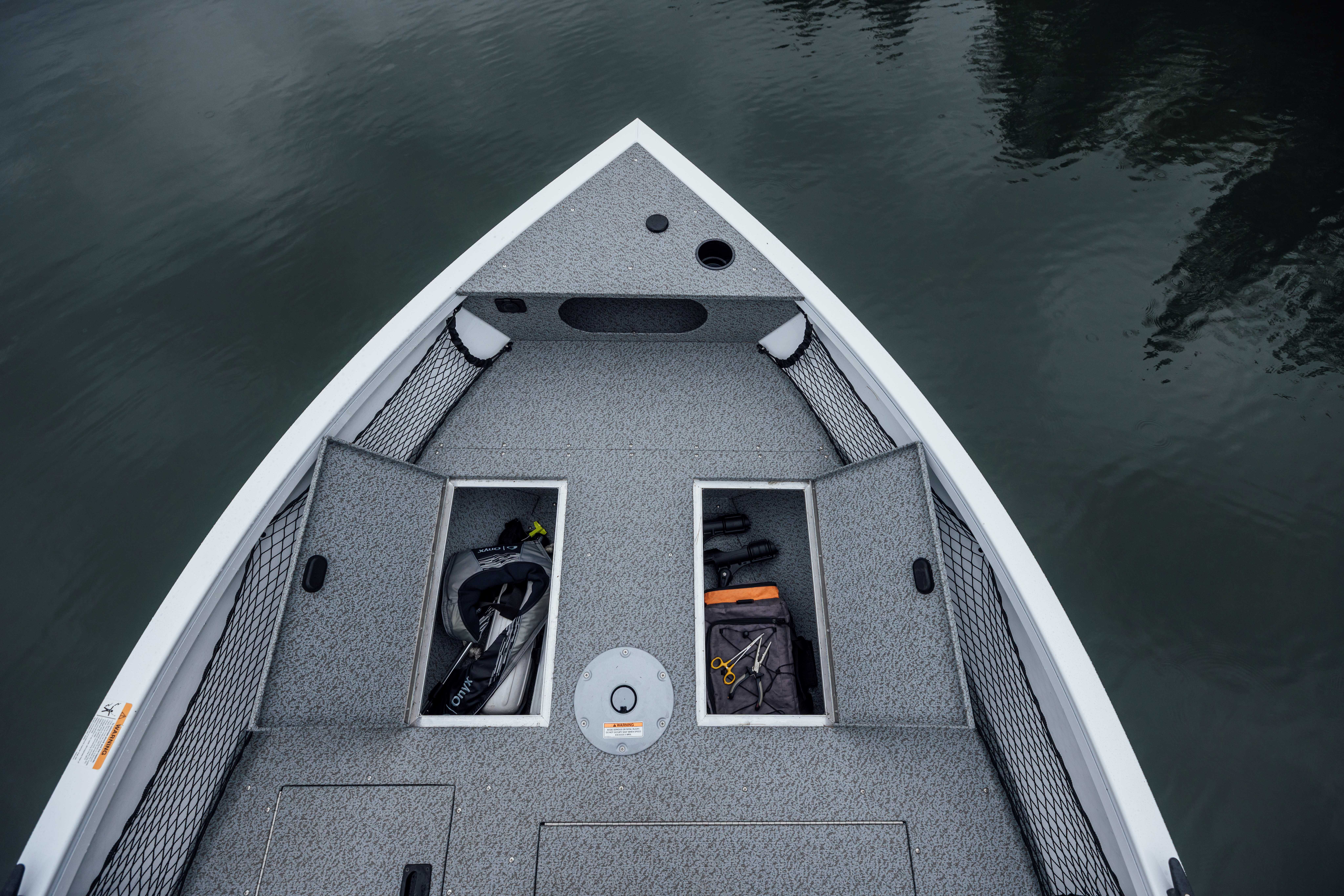 Storage compartments (port & starboard, forward bow)