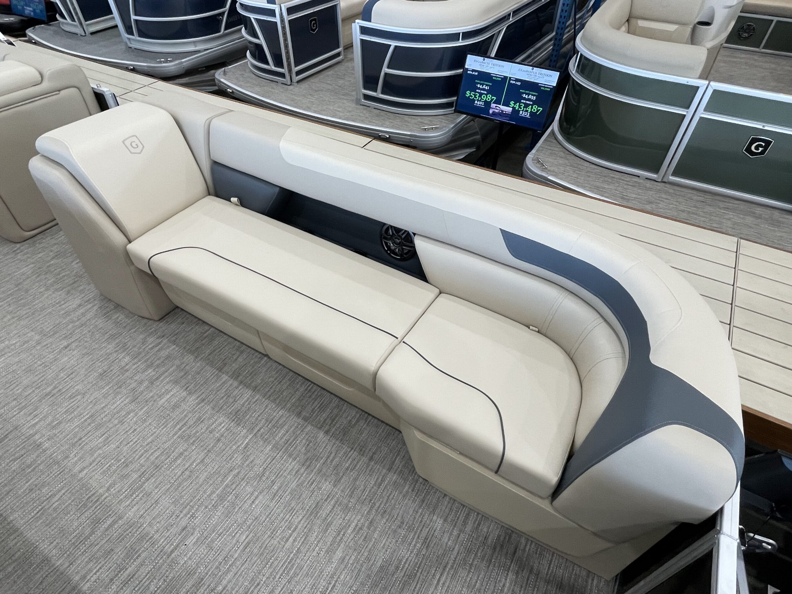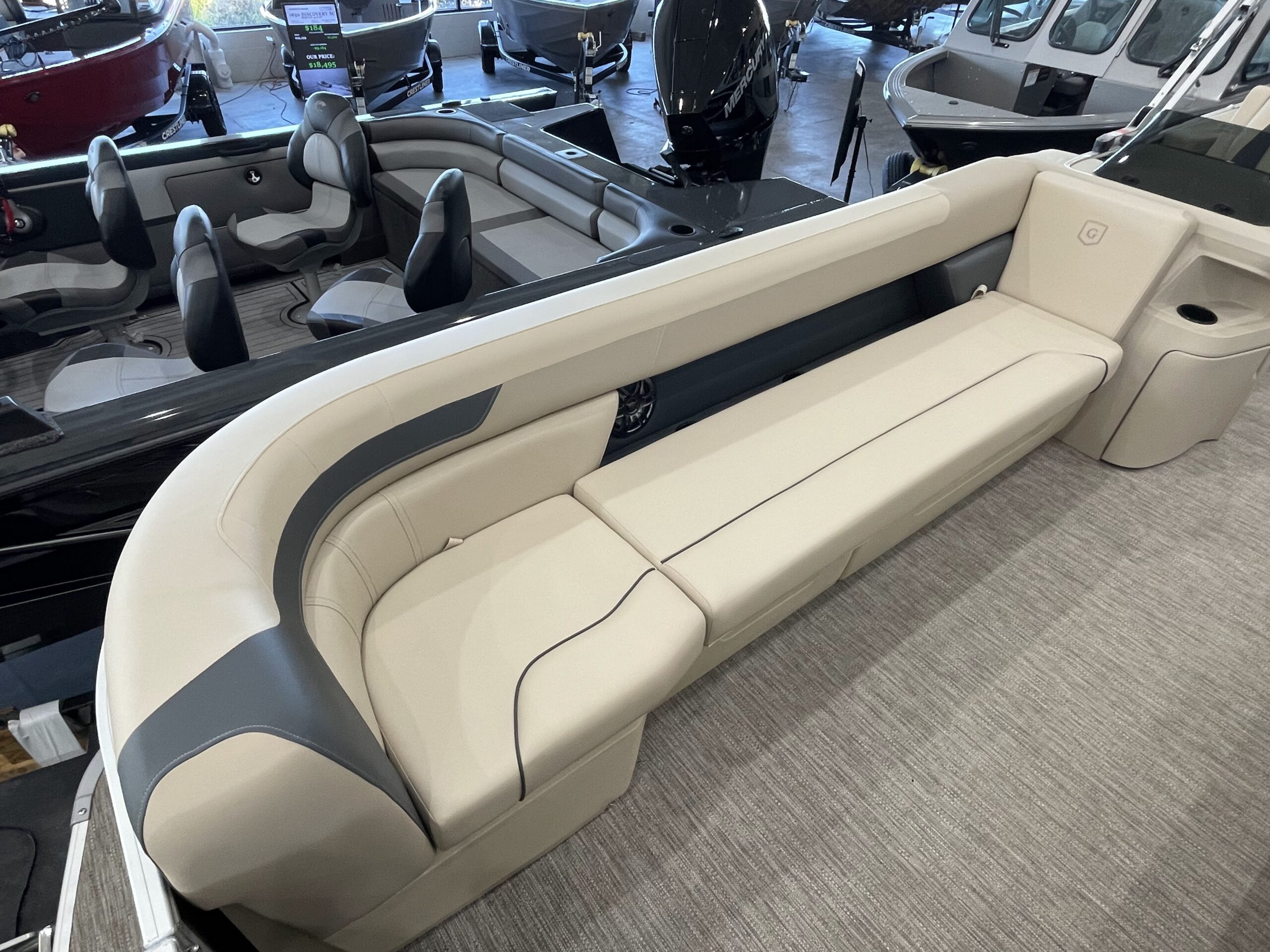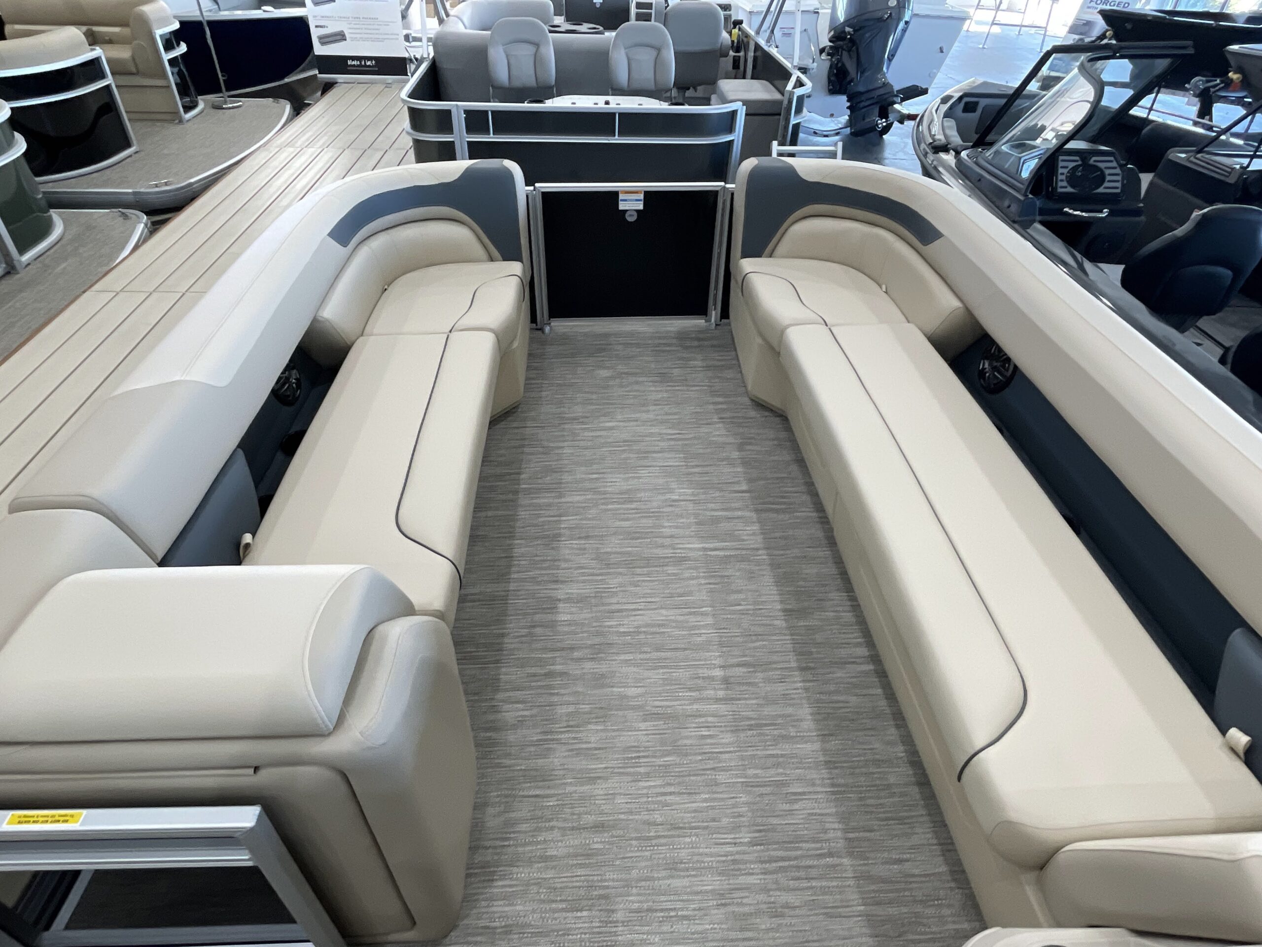 - Conversation friendly L-shaped stern seating with bow loungers