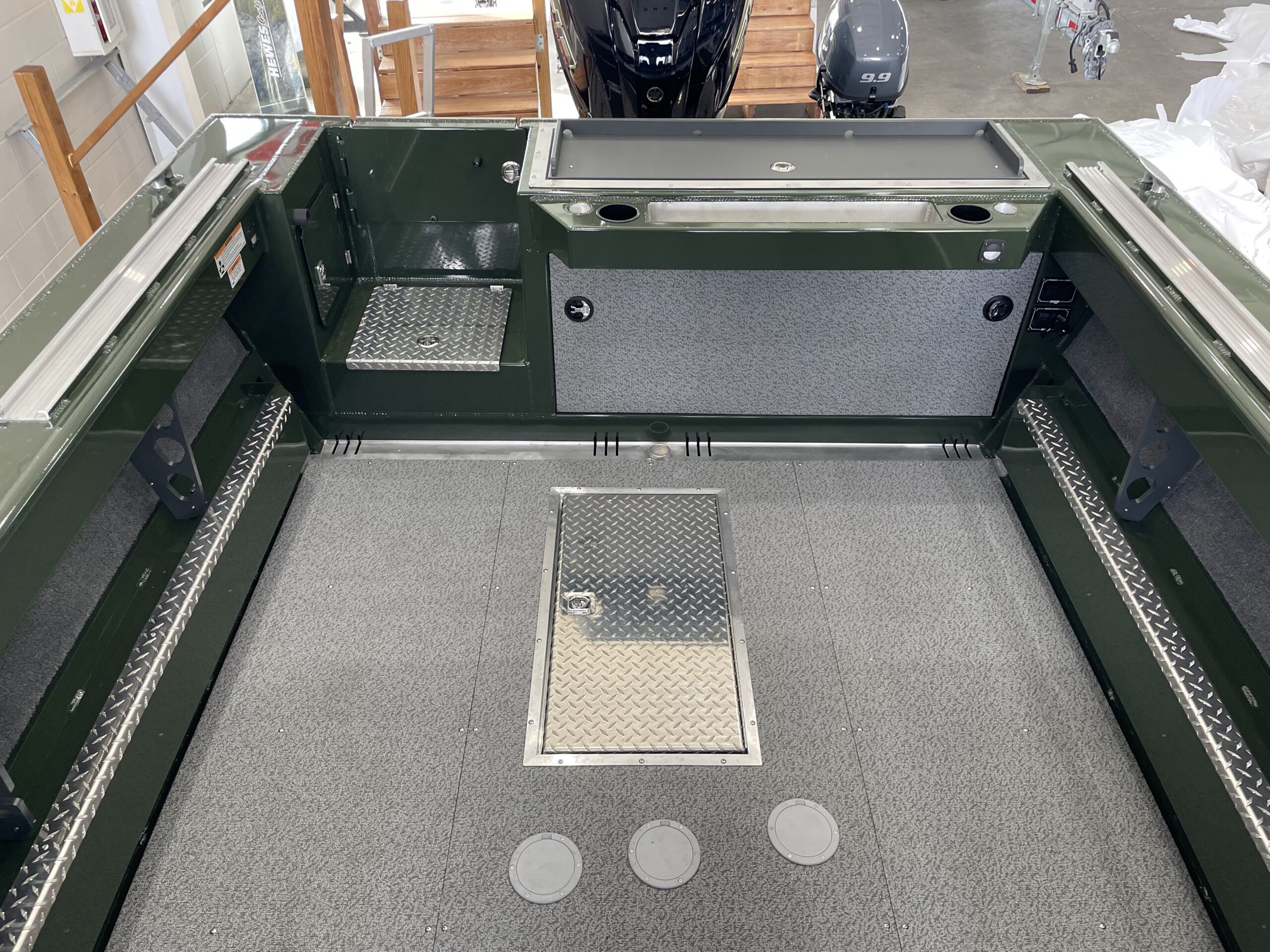 - Fish Box: In floor with macerator pump