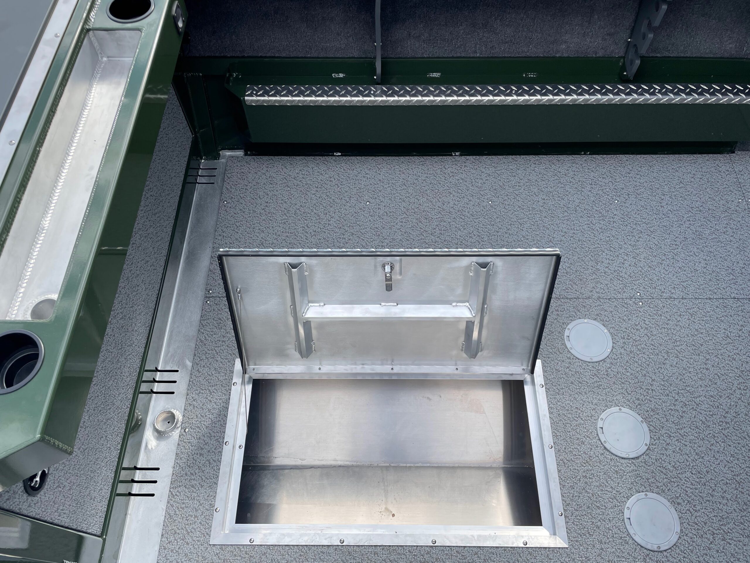 - Bow Deck: Treadplate, self-bailing, with storage