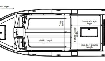 - Transom: 25” -shaft main engine and 20” -shaft kicker